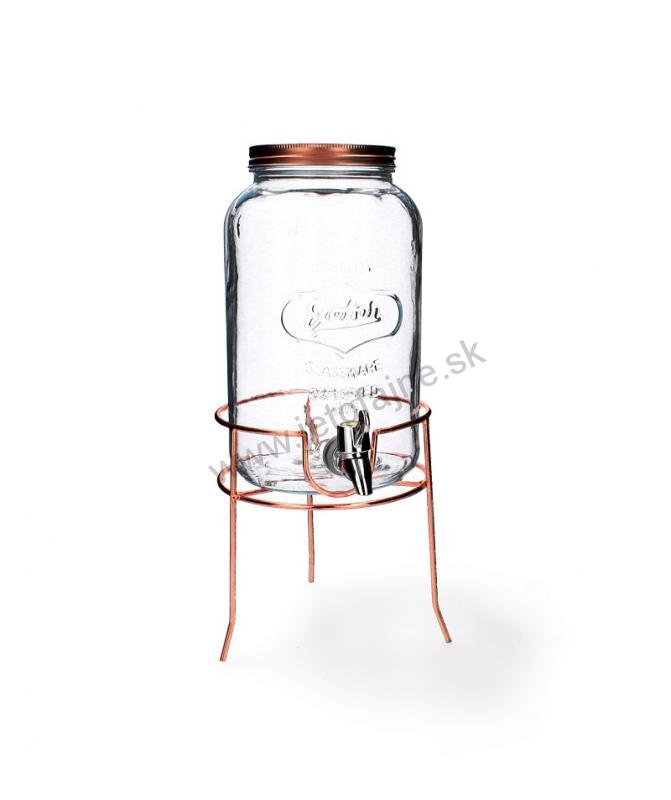 Nádoba je vyrobená z hrubého skla. Má kovový uzáver a kohútik, ktorý vám umožní vydávať nápoj. Masívne a stabilné.