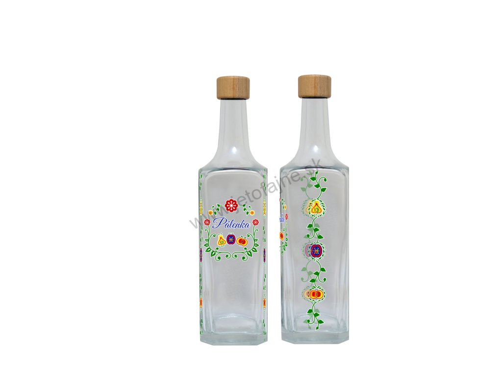 Luxusná hranatá fľaša, ktorá je zdobená sklárskym viacfarebným výpalom vmotívoch ovocia na prednej strane a po bokoch. Darčeková fľaška s originálnym dekorom je vhodným darčekom pre milovníkov destilátov. K darčekovým fľaškám odporúčame vybrať aj kalíšky v rovnakom dizajne, čím si vytvoríte kompletnú sériu podľa svojho želania.